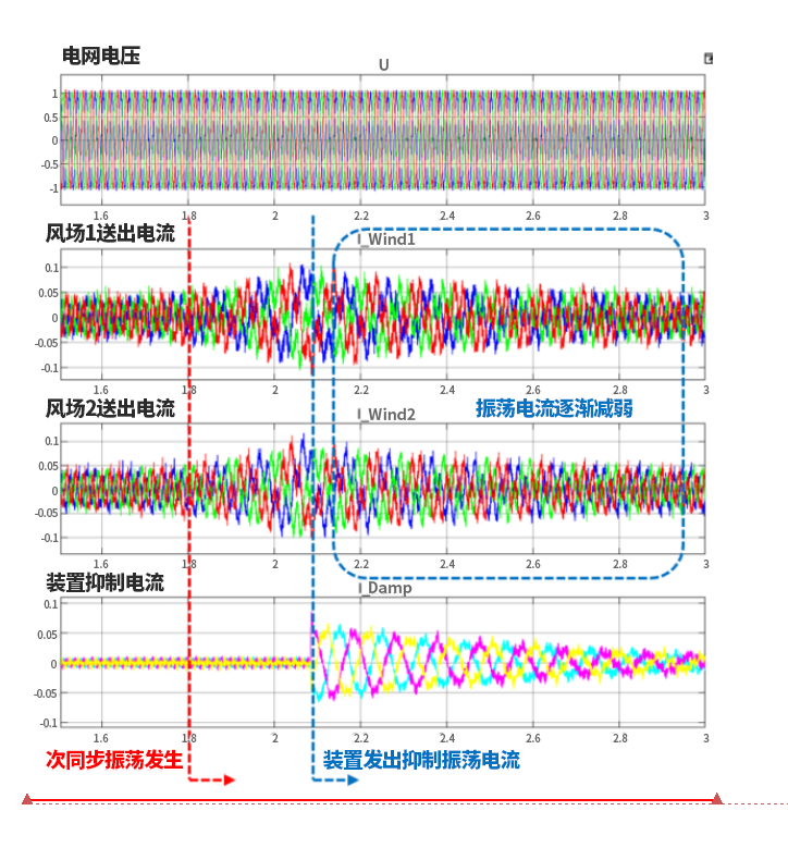 装置最快可在检测到振荡后100毫秒内启动,2秒内平息振荡,可同时抑制数赫兹至百赫兹宽频带振荡。