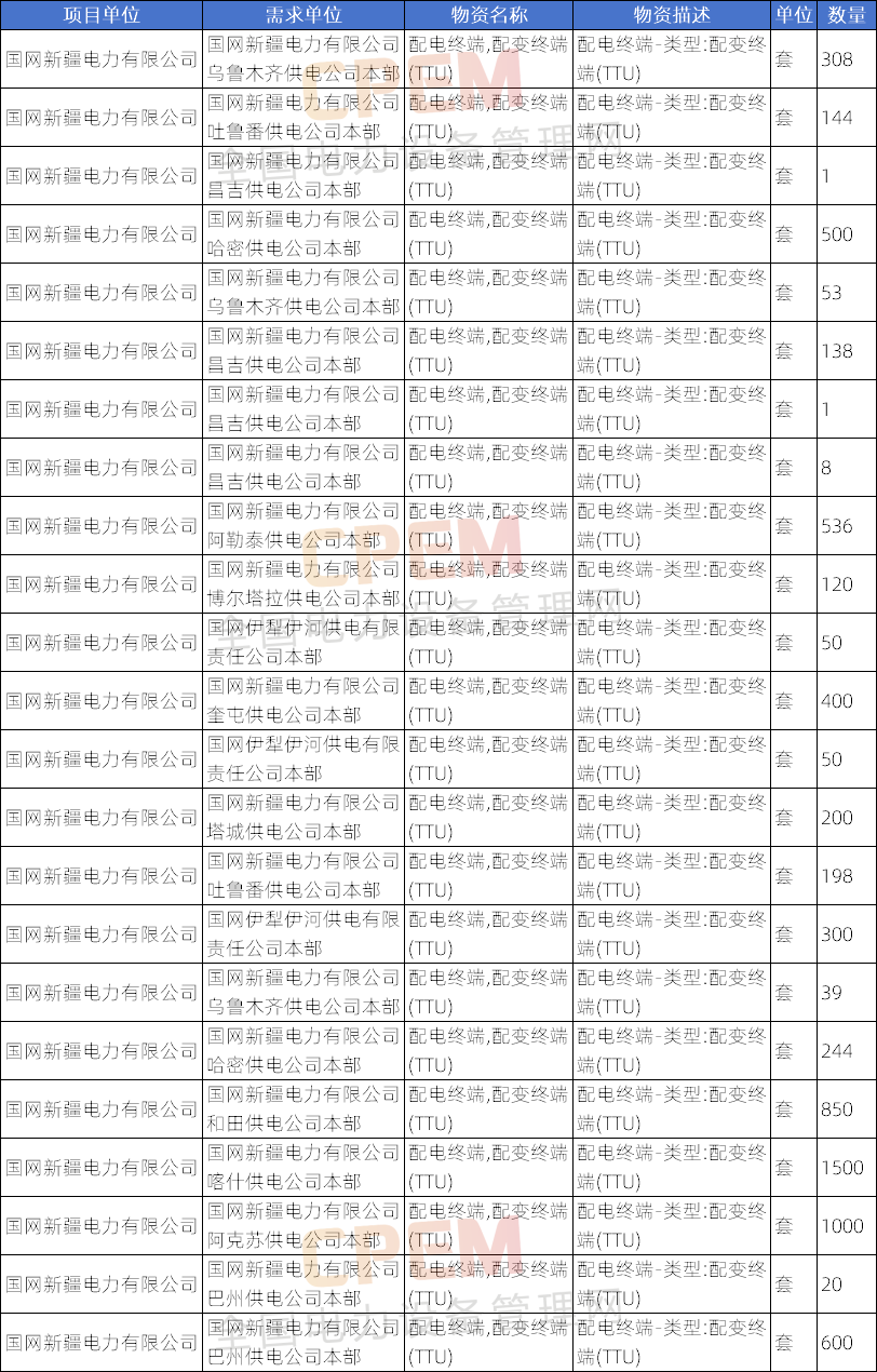 国网新疆电力有限公司“2023年第二次配网物资协议库存公开招标采购”的招标公告共发布了91类物资招标。小编根据原招标文件将配电数字化相关物资数量整理如下:
