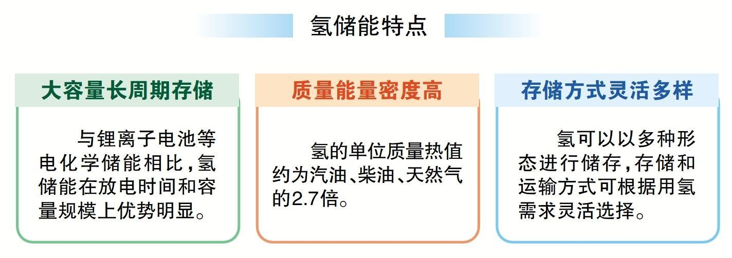 在新能源装机占比高、系统调峰运行压力大的地区,氢储能通过“电—氢—电”双向发挥作用,满足用电负荷需求,起到日内调节作用。应对电源—负荷季节性差异、极端天气带来的保供压力,氢储能可以跨季节、长周期储能,较电化学储能更具有经济性。