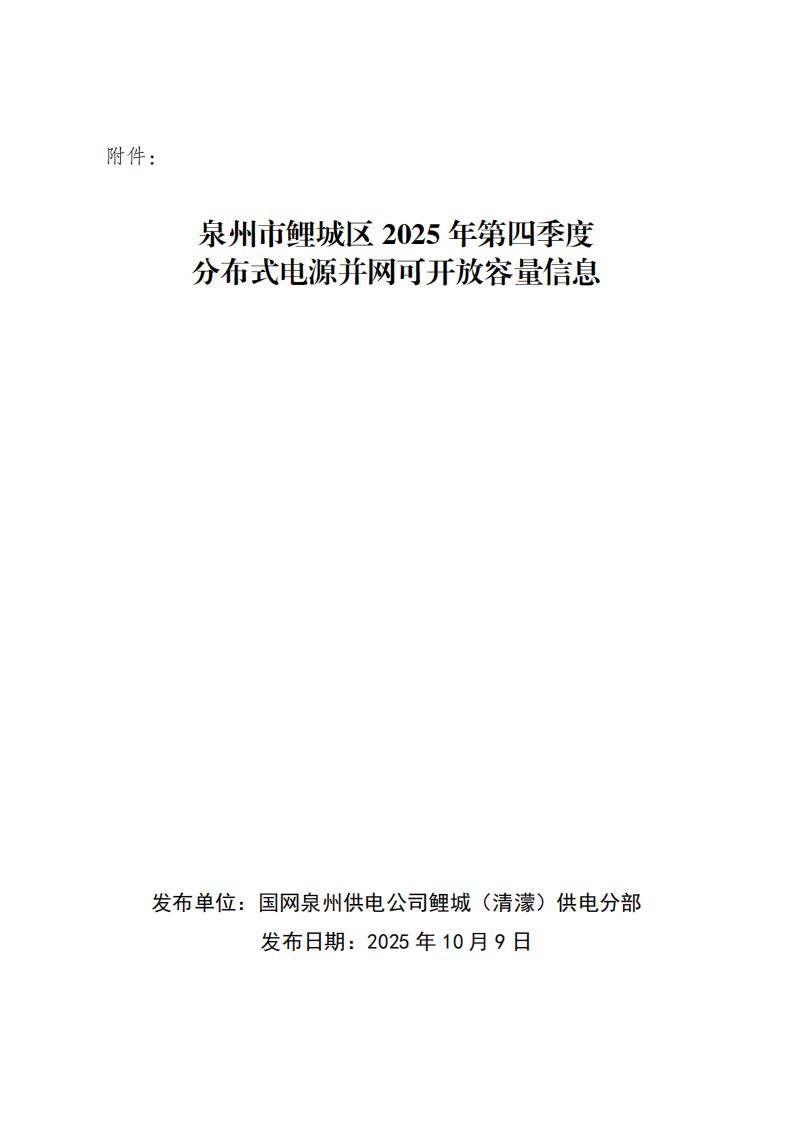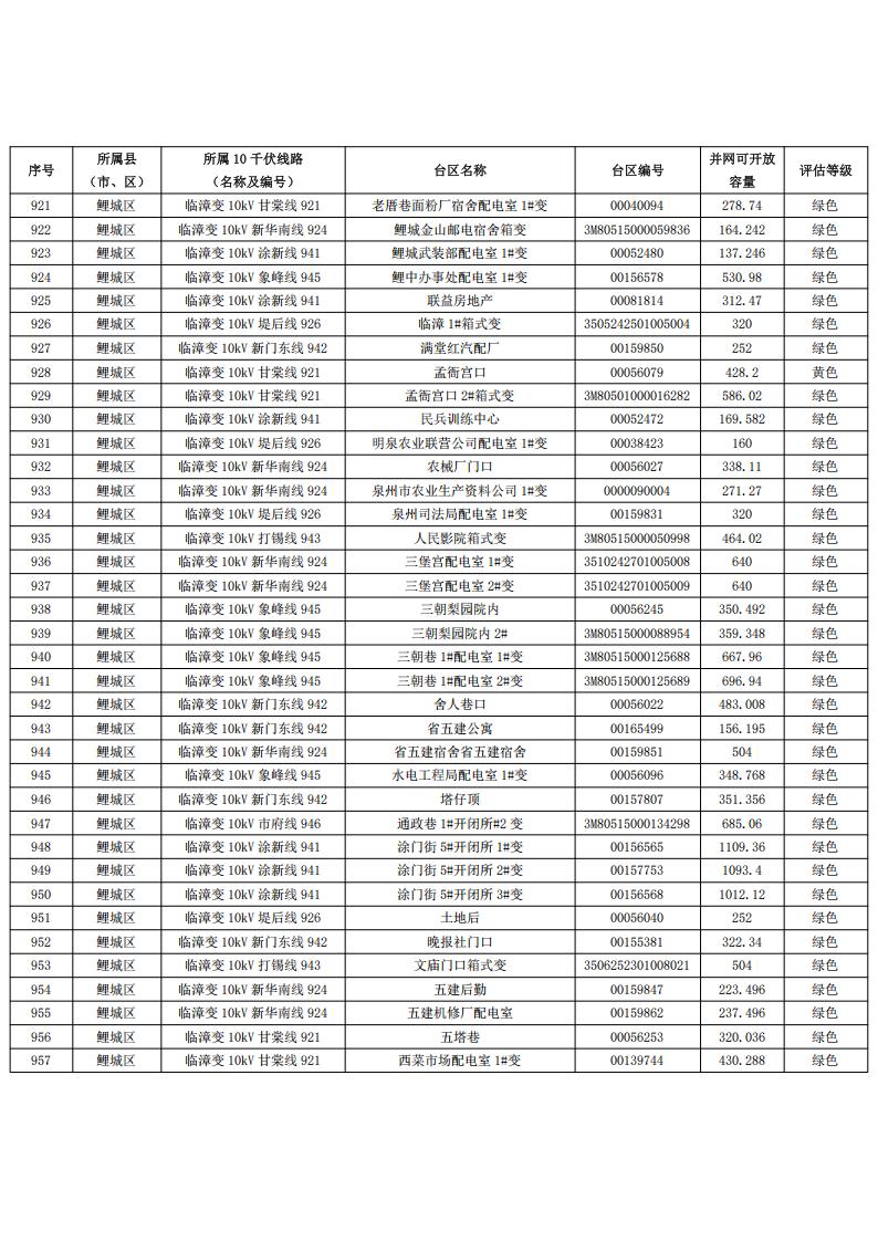 10月15日,泉州市鲤城区发展和改革局关于发布泉州市鲤城区分布式光伏接入电网承载力信息的通告。
