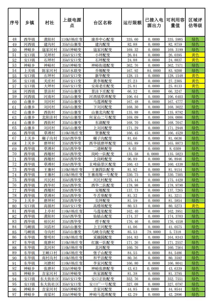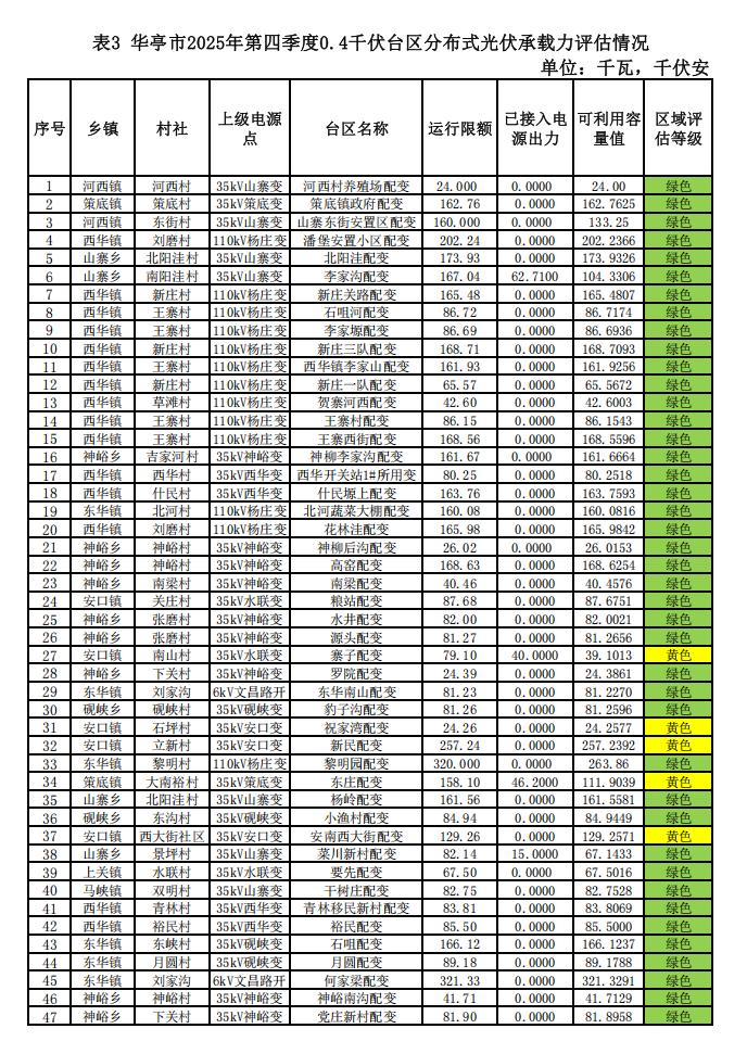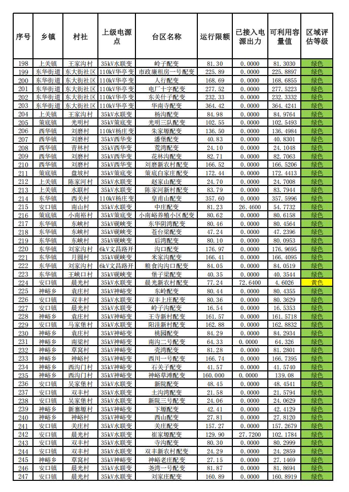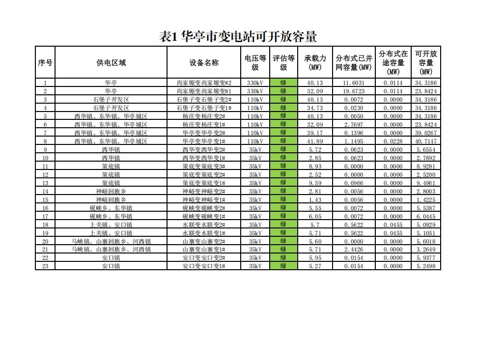 10月22日,甘肃华亭市分布式光伏接入电网可开放容量公示。
