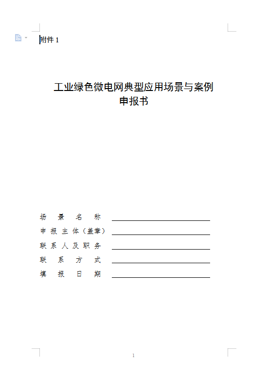 附件:1.工业绿色微电网典型应用场景与案例申报书.doc