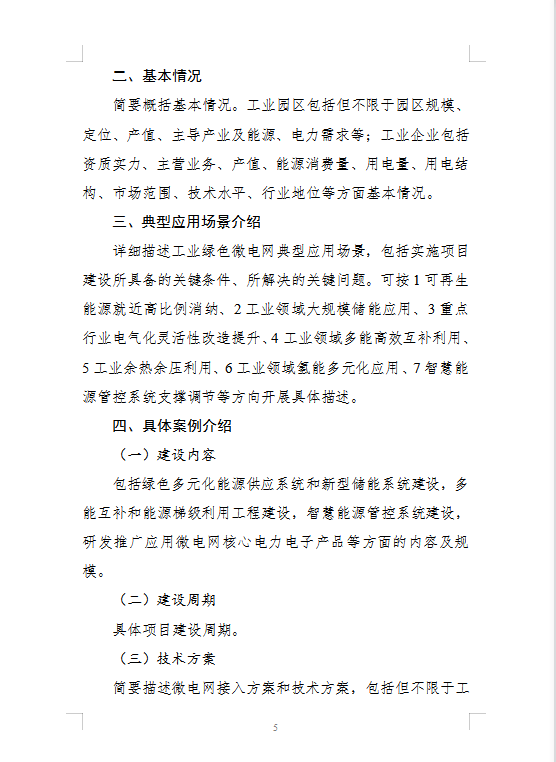 聚焦钢铁、有色、石化、化工、建材、机械、轻工、纺织、电子以及数据中心、5G基站等重点行业领域,征集一批集成应用分布式光伏、分散式风电、高效热泵、新型储能、氢能、余热余压利用、智慧能源管控等一体化系统的工业绿色微电网。
