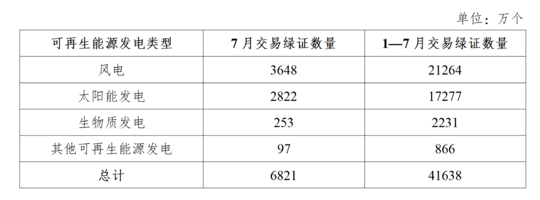 2025年7月,全国交易绿证6821万个,其中绿色电力交易绿证3472万个。2025年1—7月,全国交易绿证4.16亿个,其中绿色电力交易绿证1.41亿个。