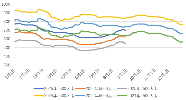 本周,南方高温支撑火电负荷高位,但重大活动筹备叠加高耗能限产,非电需求延续疲软。主产区强降雨、安监政策收紧、产能核验及月度任务收尾致供应阶段性收缩。需求季节性回落叠加大型集团外购价的再次下调使市场情绪进一步转弱,终端普遍持观望态度;坑口、港口逐日调价,中低卡煤种降幅显著。预计后期,北方入秋后日耗拐点将现,电力需求季节性回落,南方局部高温延缓降幅;随着重大活动及北方汛期结束叠加优质产能释放,供应弹性或将增强。综合判断,短期内终端在库存高位、长协稳定及进口补充下,市场煤需求有限,供需基本趋于偏宽松格局,现货价格将延续弱势。建议继续做好中长期合同履约,保持适量刚需现货采购,通过优化库存结构等措施防范风险,保障电力供应安全。同时,近期铁路运费优惠政策面积减少、力度减弱,根据铁路运费优惠政策变化情况,合理优化陆运煤运输路线。