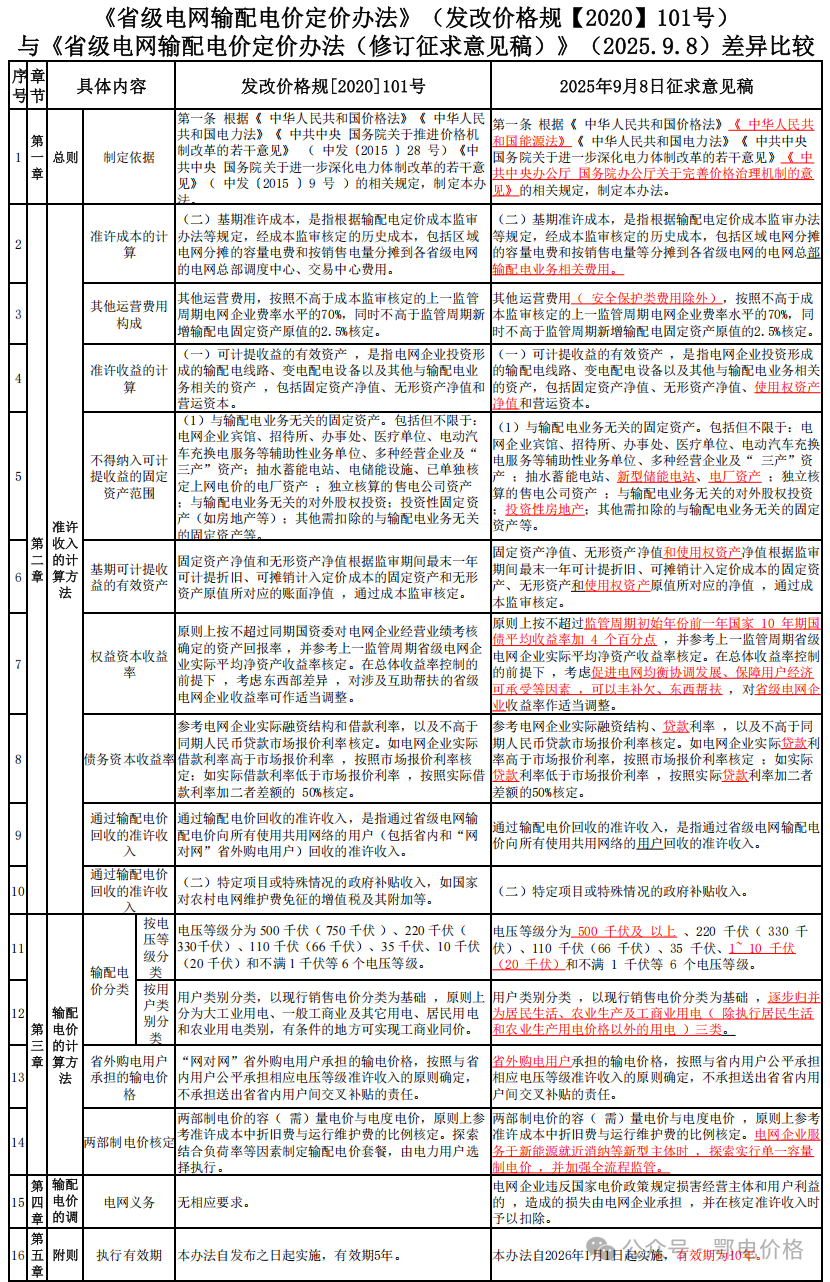 为便于大家及时掌握政策变化情况,我们团队第一时间对《省级电网输配电价定价办法》新旧版本进行了比较分析,新办法变化部分用红色字体标示,现分享给大家。因时间关系,难免错漏,请批评指正!