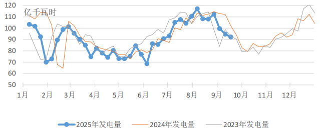 根据中电联电力行业燃料统计,截至9月18日,纳入统计的发电集团燃煤电厂本月累计发电量同比下降12.9%,本年累计发电量同比下降4.2%。燃煤电厂耗煤量本月累计同比下降13.4%,本年累计同比下降4.9%。燃煤电厂煤炭库存高于去年同期986万吨,库存可用天数高于上年同期3.9天。