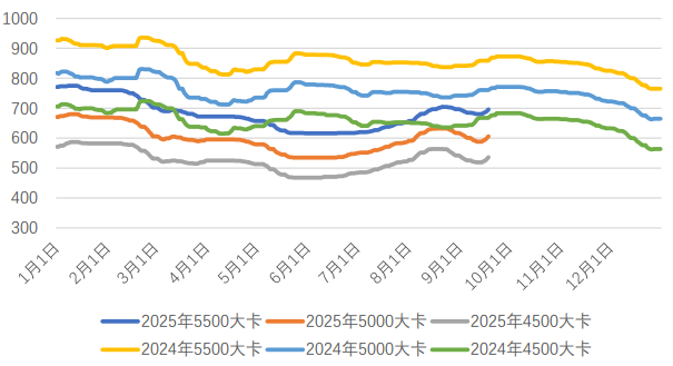 国内煤炭主产地方面,主产地市场呈现“供需双增,价格稳中偏强”的特征。除陕西、内蒙古部分煤矿因安监核查或检修短暂停产外,主产地供应整体稳定。“双节”假期及大秦线秋检临近,叠加北方冬储煤工作陆续展开,电煤采购需求小幅释放,同时化工等非电行业需求向好。大型煤企连续上调外购价格,市场活跃度迅速回暖,坑口价格普遍上调。