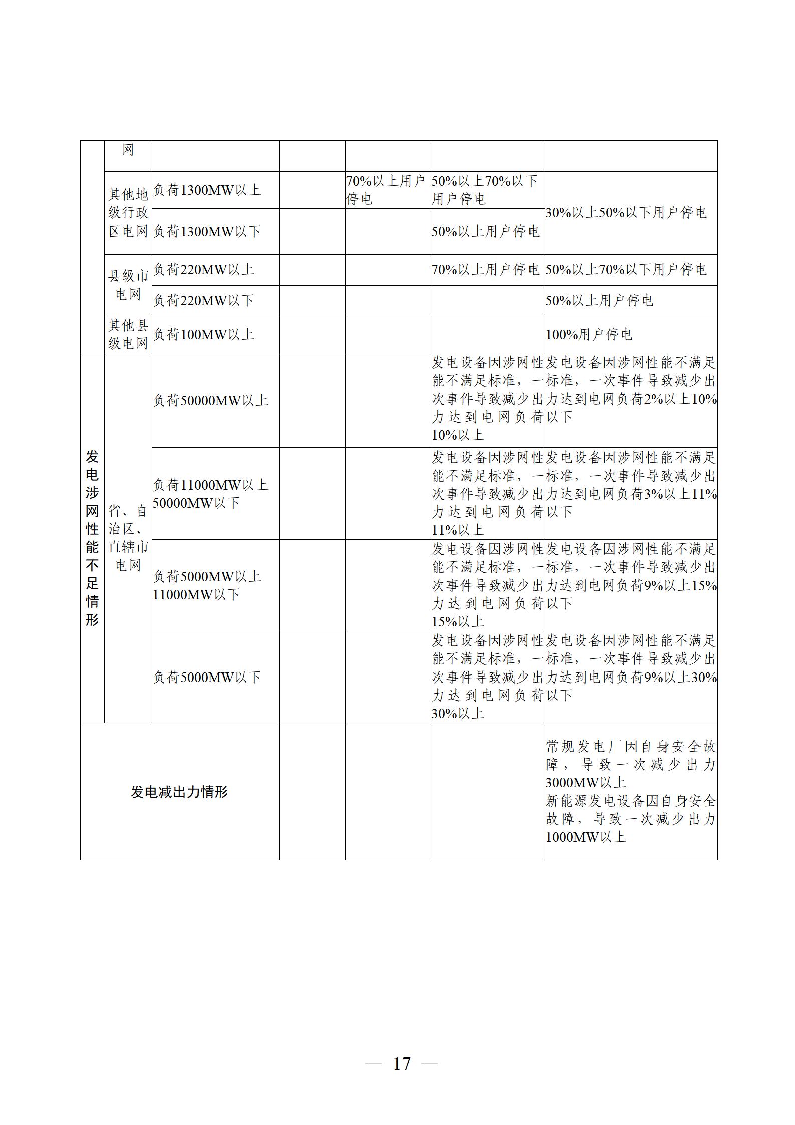 二是调整事故等级划分标准。着眼多元并网主体接入、负荷水平持续增长的趋势,遵循“公平公正、科学严谨、从严管控”的原则,优化完善事故等级划分标准,重点通过调整各级行政区域负荷基数区间,确保事故判据与当前电力系统发展现状相适应。