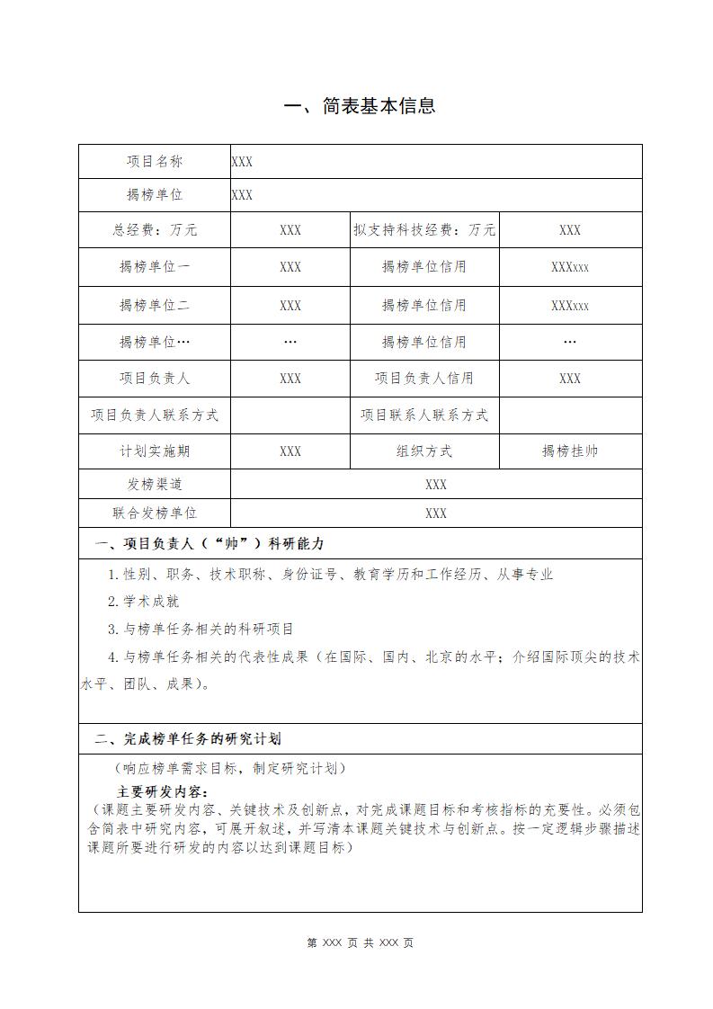 3.北京市科技计划“揭榜挂帅”项目申报简表