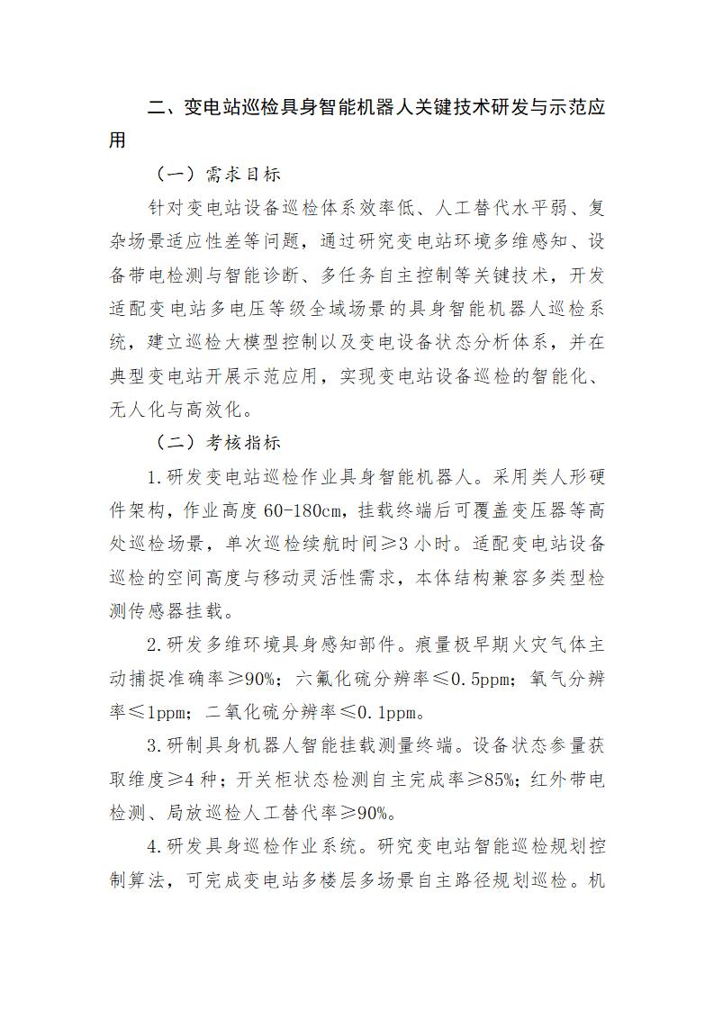 为贯彻落实《北京具身智能科技创新与产业培育行动计划(2025-2027年)》,推动北京市具身智能产业发展,加速在能源电力等典型工业场景率先应用落地。市科委、中关村管委会充分发挥国家电网作为能源电力领域链主企业作用,共同梳理能源电力行业对具身智能发展需求,并凝练形成《2025年度能源电力场景具身智能“揭榜挂帅”项目榜单》(附件1),现将榜单任务及有关要求予以发布,榜单任务见附件。