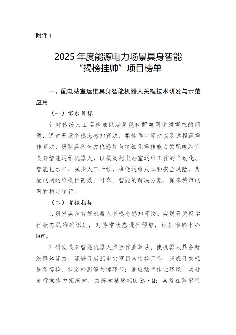 附件:1.2025年度能源电力场景具身智能“揭榜挂帅”项目榜单