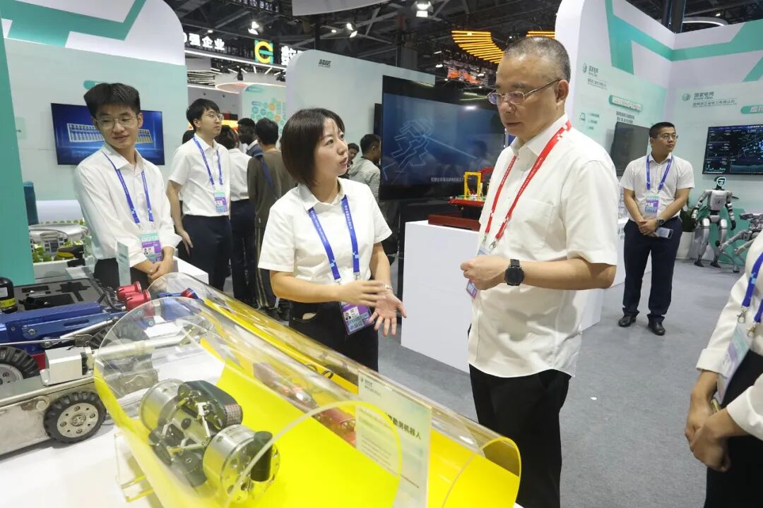 在不远处的人工智能展区,另一款机器人也吸引了大量关注——它就是由国网宁波供电公司牵头研发的地下电力管道智能探测机器人。城市地下管道网络有多复杂,它的身手就显得有多敏捷,能深入其中完成精准勘察和作业。