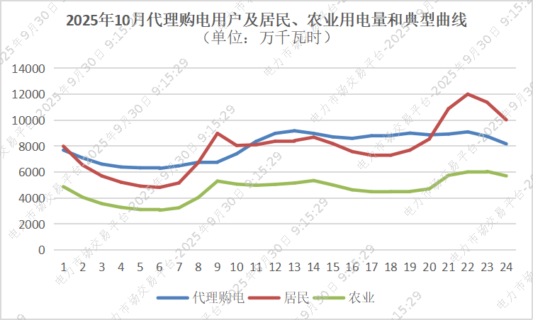 新疆电力交易中心发布2025年10月代理购电和居民农业等典型负荷曲线,详情如下: