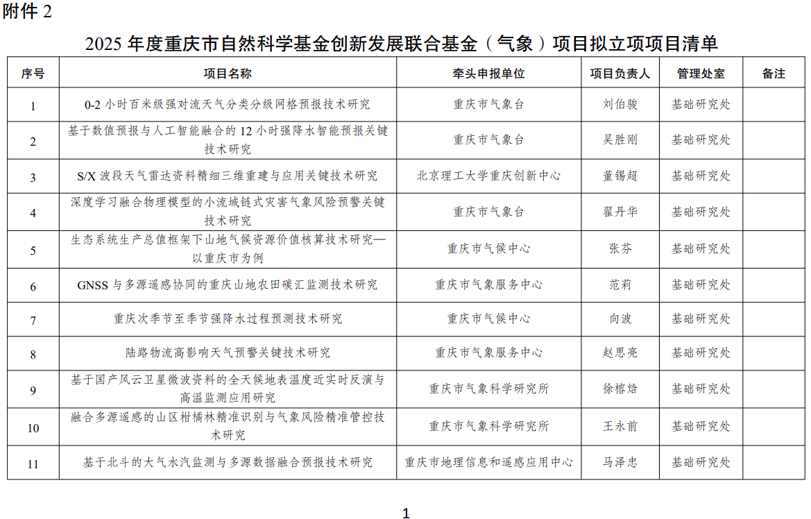 2.2025年度重庆市自然科学基金创新发展联合基金(气象)项目拟立项项目清单