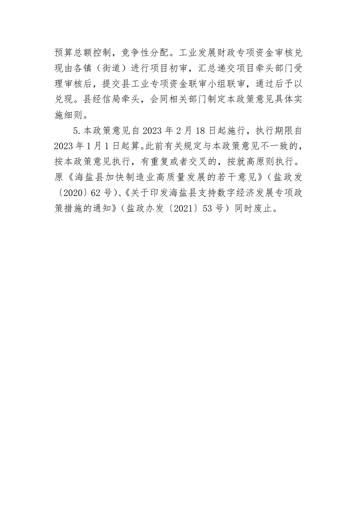关于修订《海盐县推进制造业数字化绿色化转型若干政策意见》(盐政办发〔2023〕3号)的起草说明