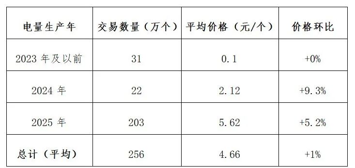 10月6日-10月12日,绿证交易256万个,均价4.66元/个,环比上涨1%,2025年累计交易量22268万个。