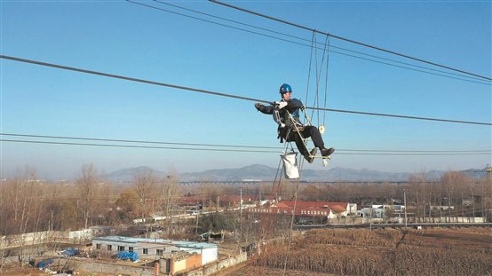 1月28日,山东莱芜供电公司输电运检中心9名党员突击队队员完成了220千伏城勺Ⅰ线3~4号塔间的间隔棒加装工作,保障线路安全运行。
