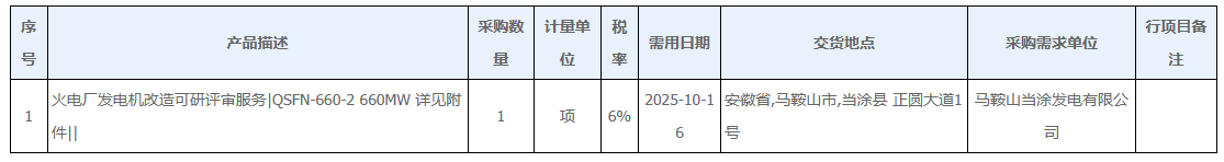 六、采购单位:马鞍山当涂发电有限公司