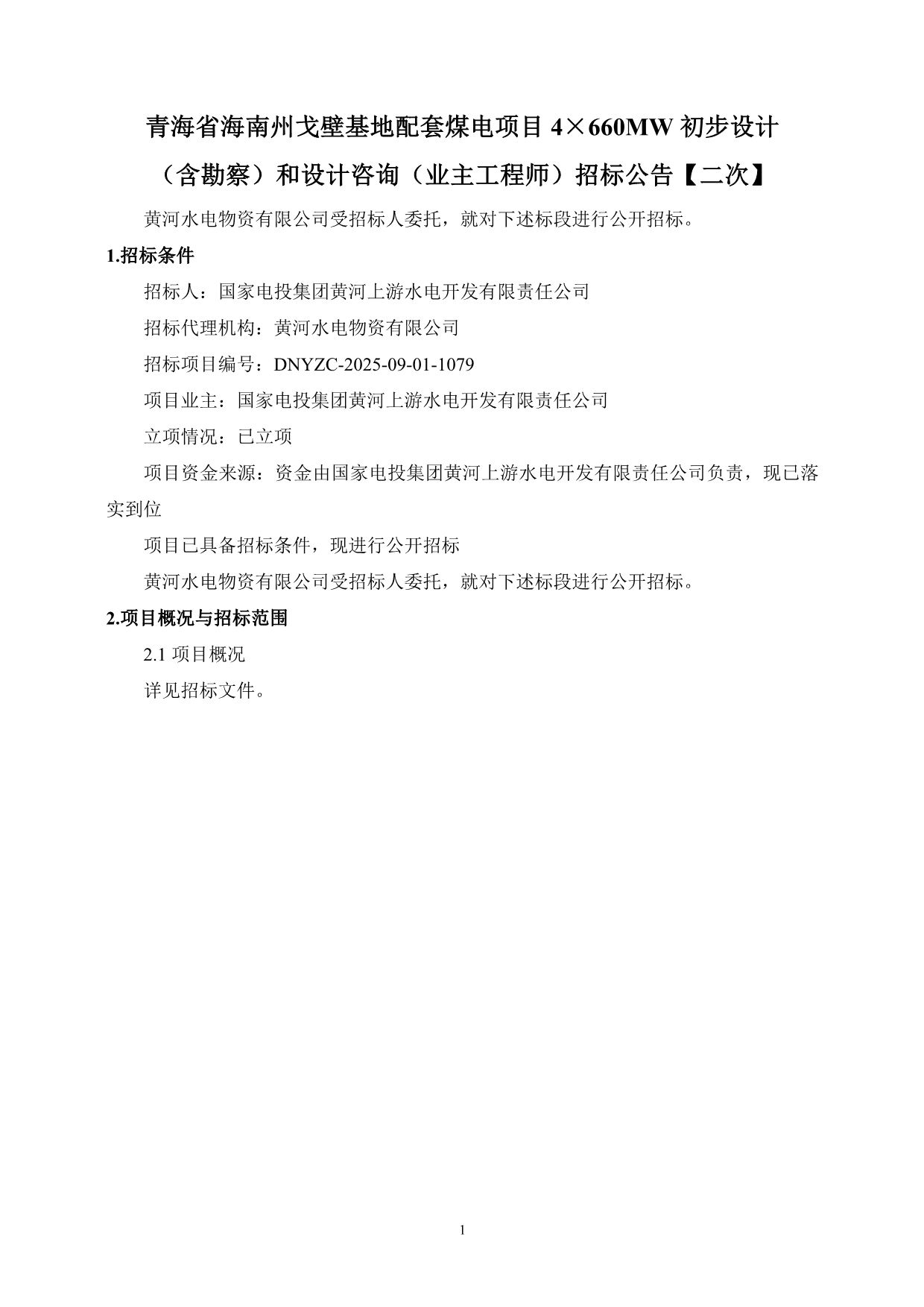 青海省海南州戈壁基地配套煤电项目 4×660MW初步设计(含勘察)和设计咨询(业主工程师)招标公告【二次】