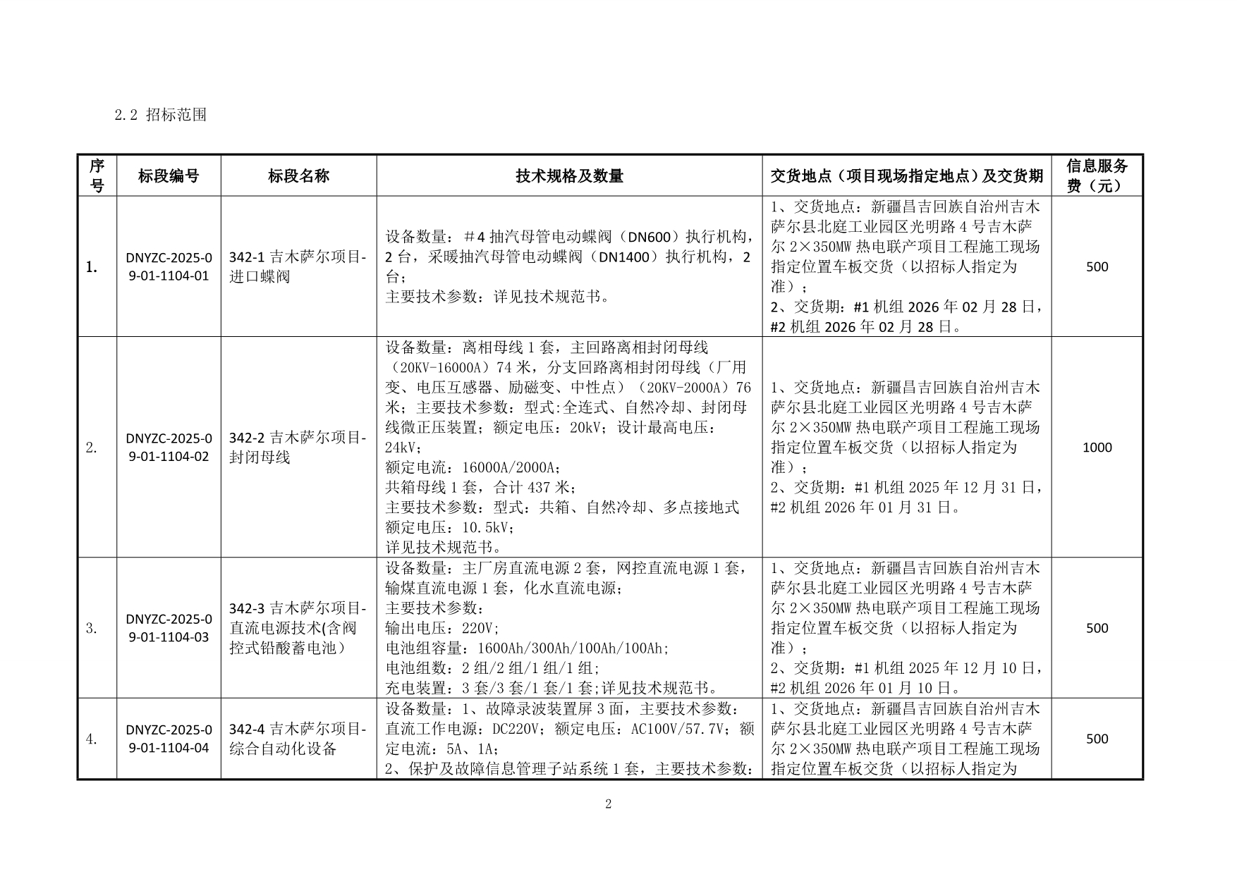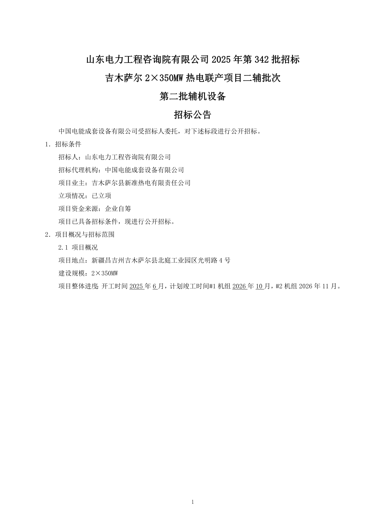 山东电力工程咨询院有限公司 2025 年第 342 批招标吉木萨尔 2×350MW 热电联产项目二辅批次第二批辅机设备招标公告