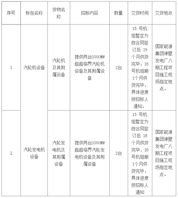 本招标项目名称为:国家能源集团2025年8月电站汽轮机、汽轮发电机及附属设备(江苏谏壁八期2×1000MW)公开招标,项目招标编号为:CEZB250209255,招标人为国能(北京)国际经贸有限公司,项目单位为:国家能源集团谏壁发电厂,资金来源为自筹。招标代理机构为国家能源集团国际工程咨询有限公司。本项目已具备招标条件,现对该项目进行国内资格后审公开招标。