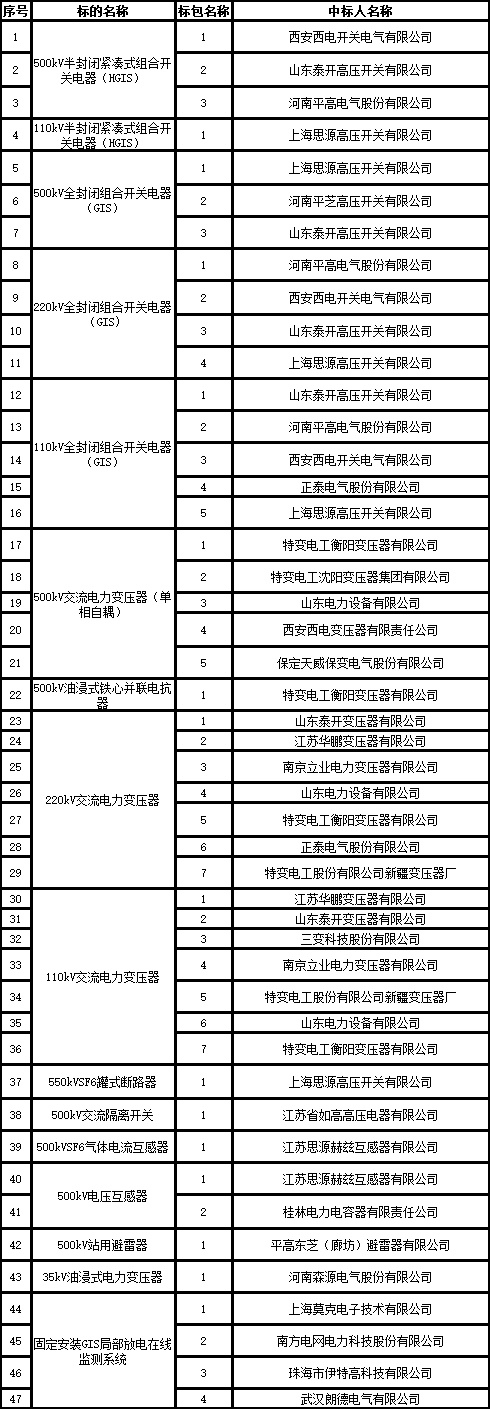 南方电网公司2025年主网一次设备第二批批次招标项目中标结果公告