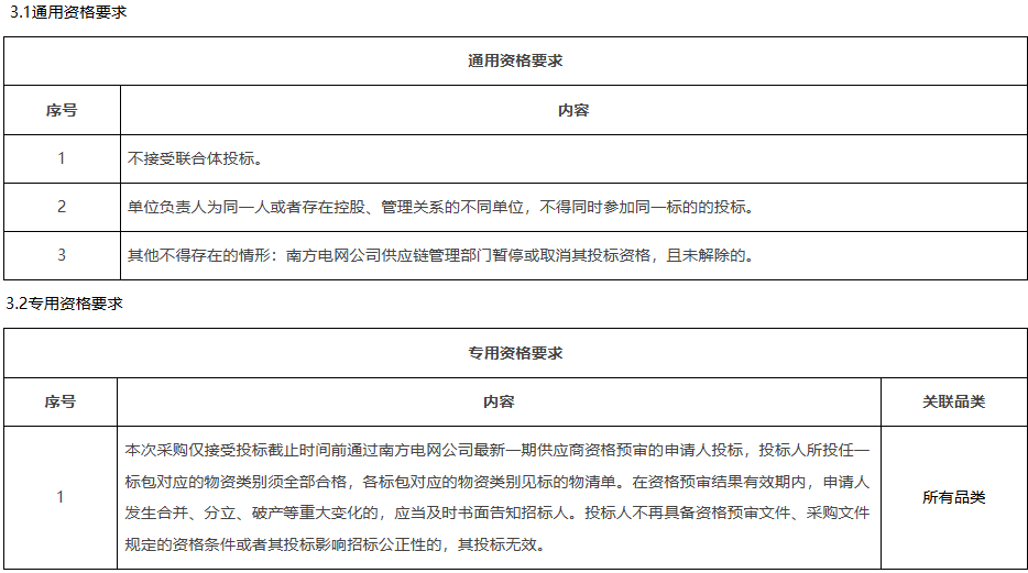 应用投标截止时间前南方电网公司最新供应商资格预审结果,具体见下表: