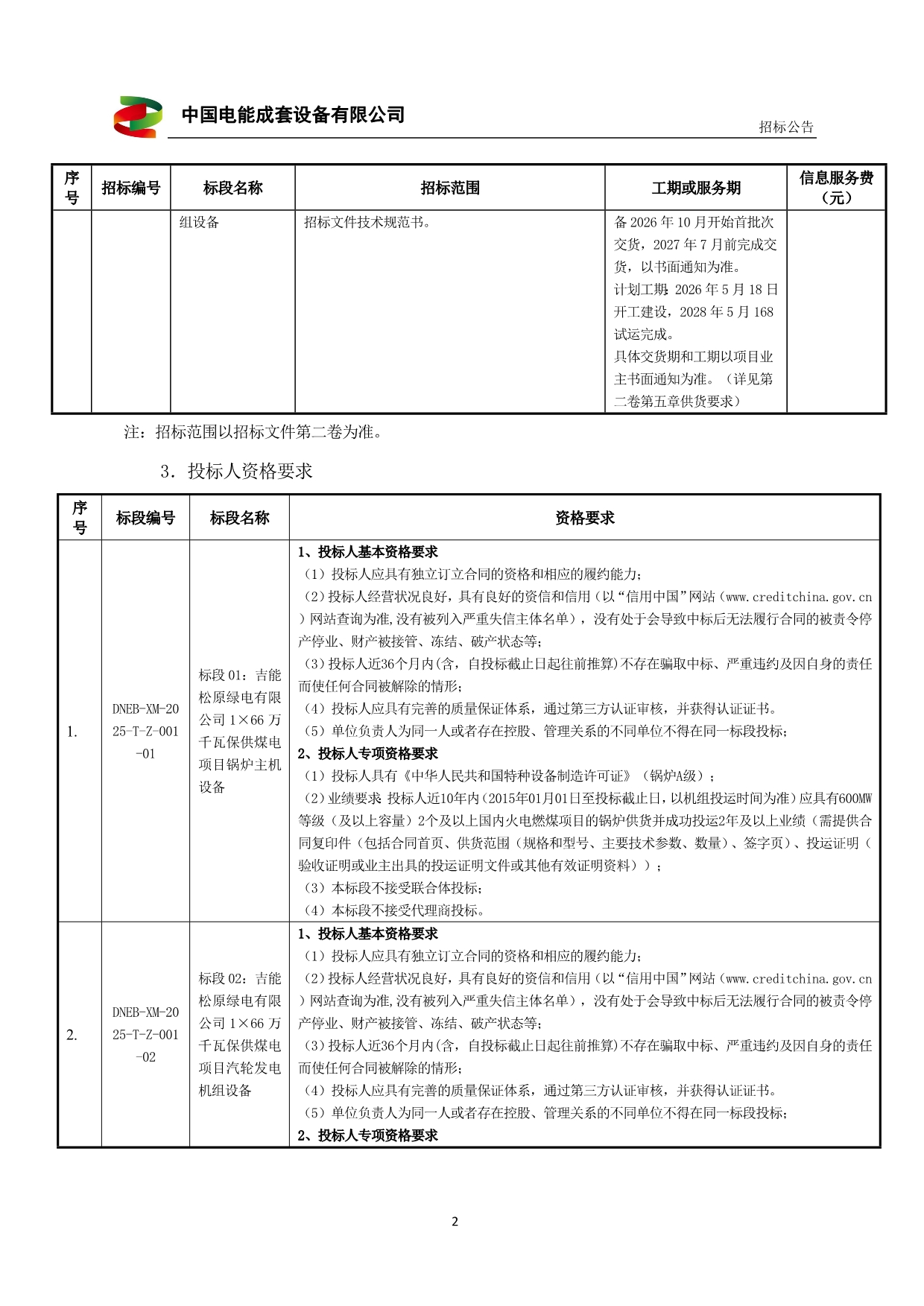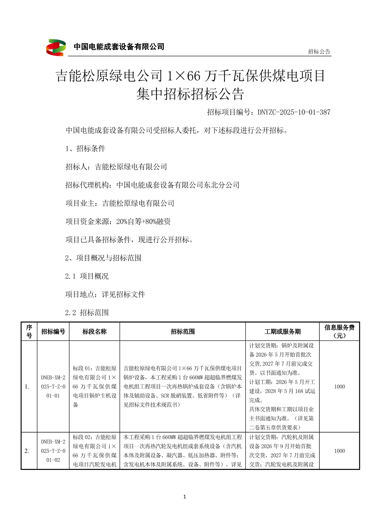 近日,国家电投发布吉能松原绿电公司 1×66 万千瓦保供煤电项目集中招标招标公告。招标范围包括:本工程采购1台660MW超超临界燃煤发电机组工程项目一次再热锅炉成套设备(含锅炉本体及辅助设备、SCR脱硝装置、低省附件等),本工程采购1台660MW超超临界燃煤发电机组工程项目一次再热汽轮发电机组成套系统设备(含汽机本体及附属设备、凝汽器、低压加热器、附件等;含发电机本体及附属系统、设备、附件等)。