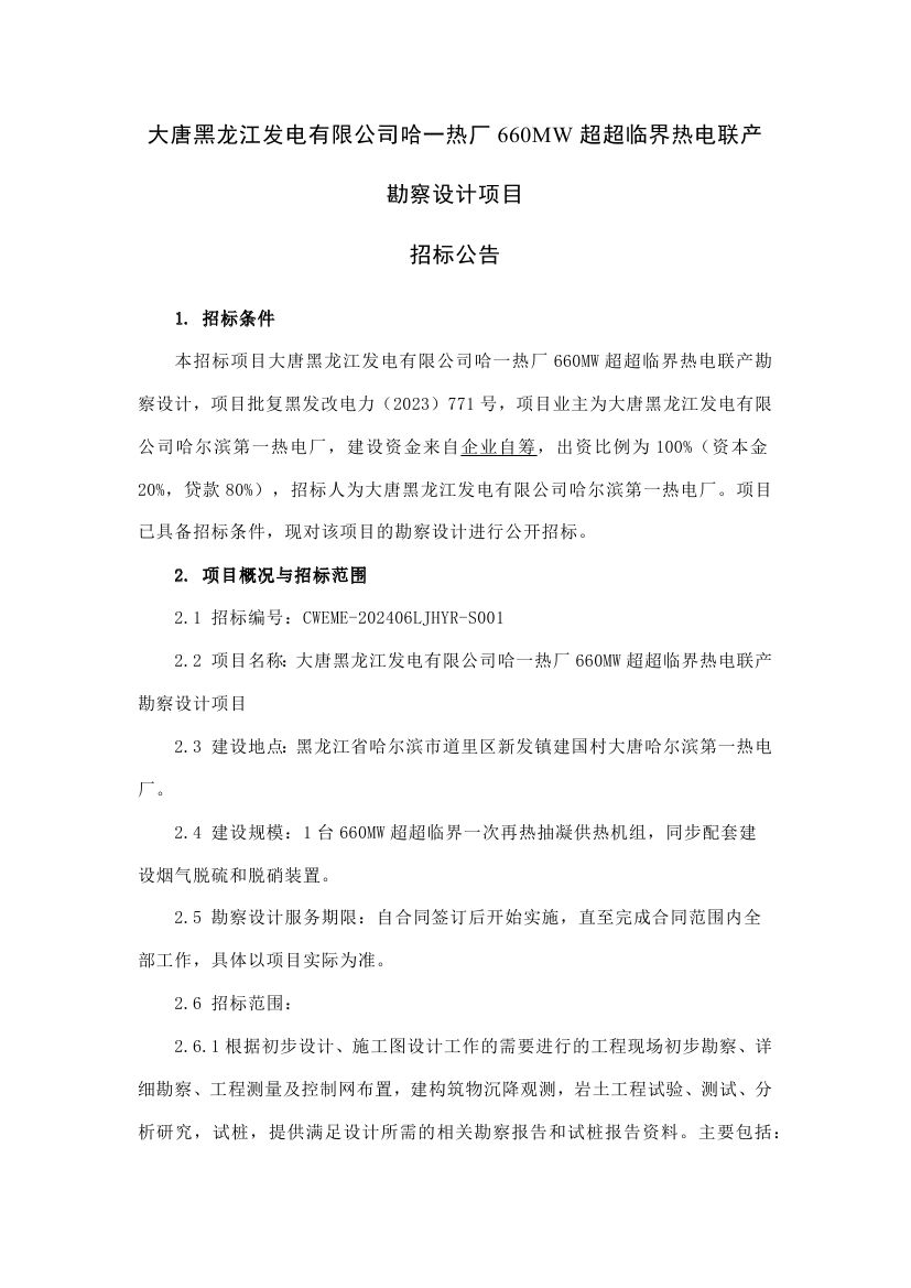 2.2 项目名称:大唐黑龙江发电有限公司哈一热厂 660MW 超超临界热电联产勘察设计项目