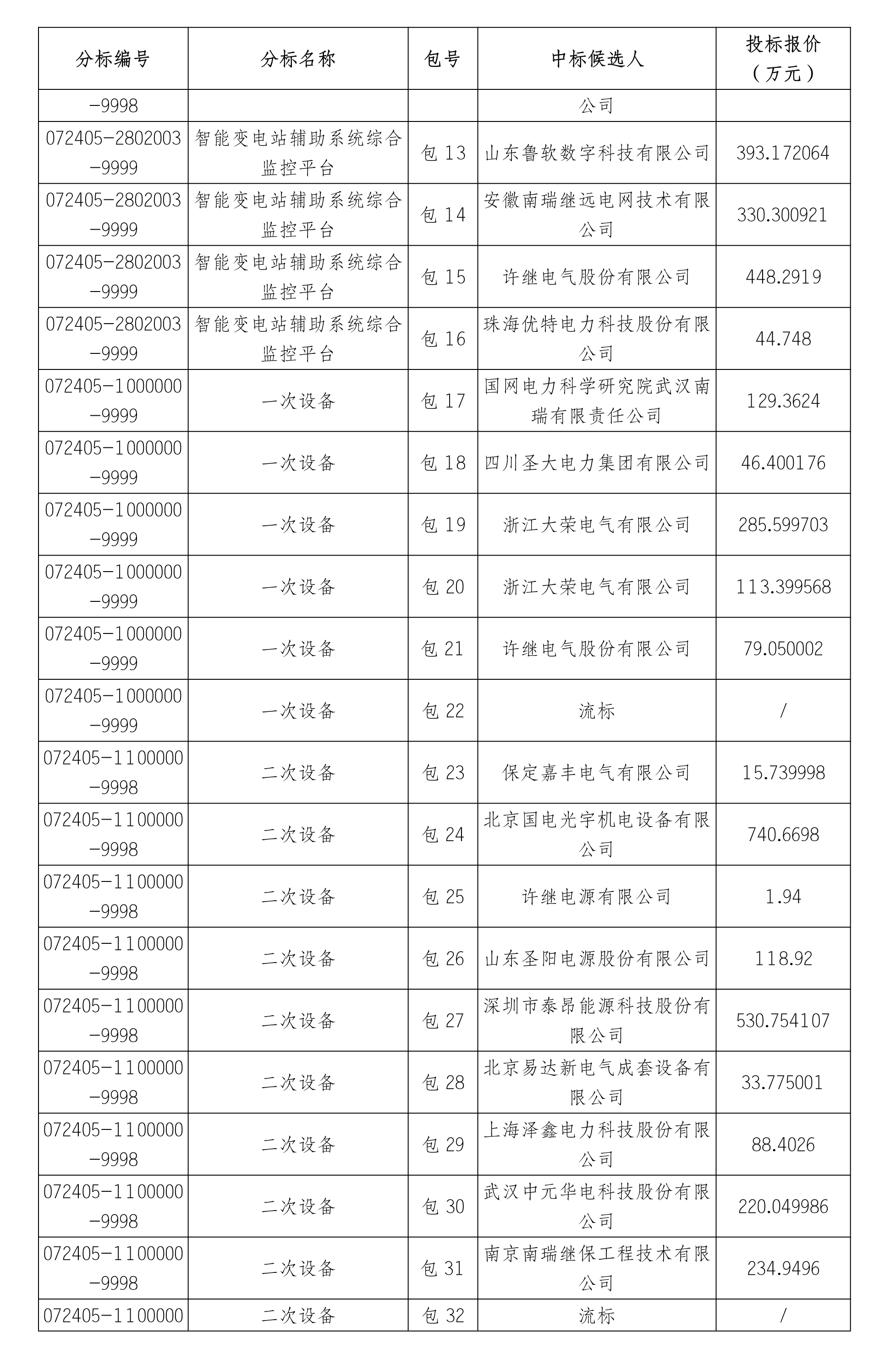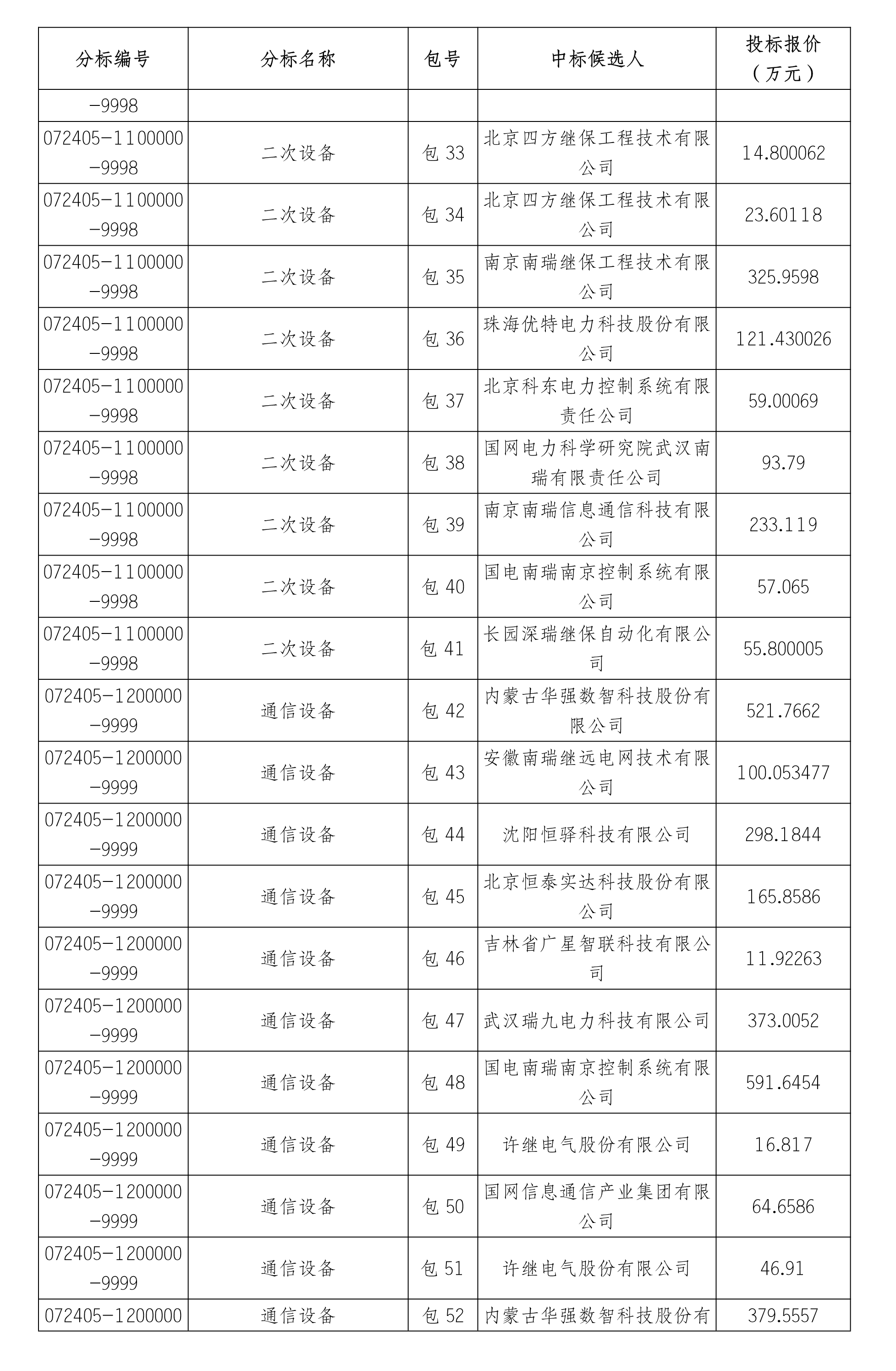 国网内蒙古东部电力有限公司2024年第三次物资类招标采购推荐的中标候选人公示