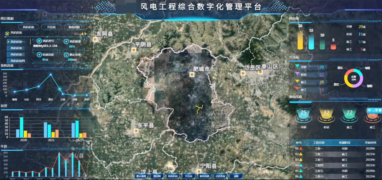 随着碳达峰碳中和目标的提出,我国积极推进大型风电等可再生能源工程的建设,但是风电运行受自然环境等外在因素影响,对工程建设与设备运维都有着极为严格的要求,因此格外需要一套智慧管理方案对风电工程进行全阶段数据采集、精判,对风机设备健康状态与性能进行实时监控、维护,以保障风电系统的高效稳定、安全经济运行。