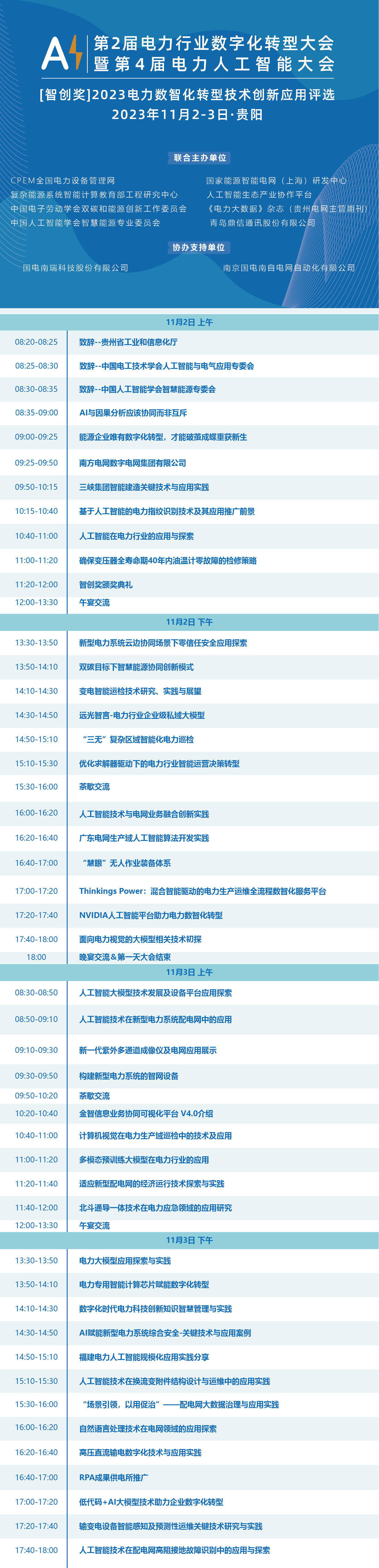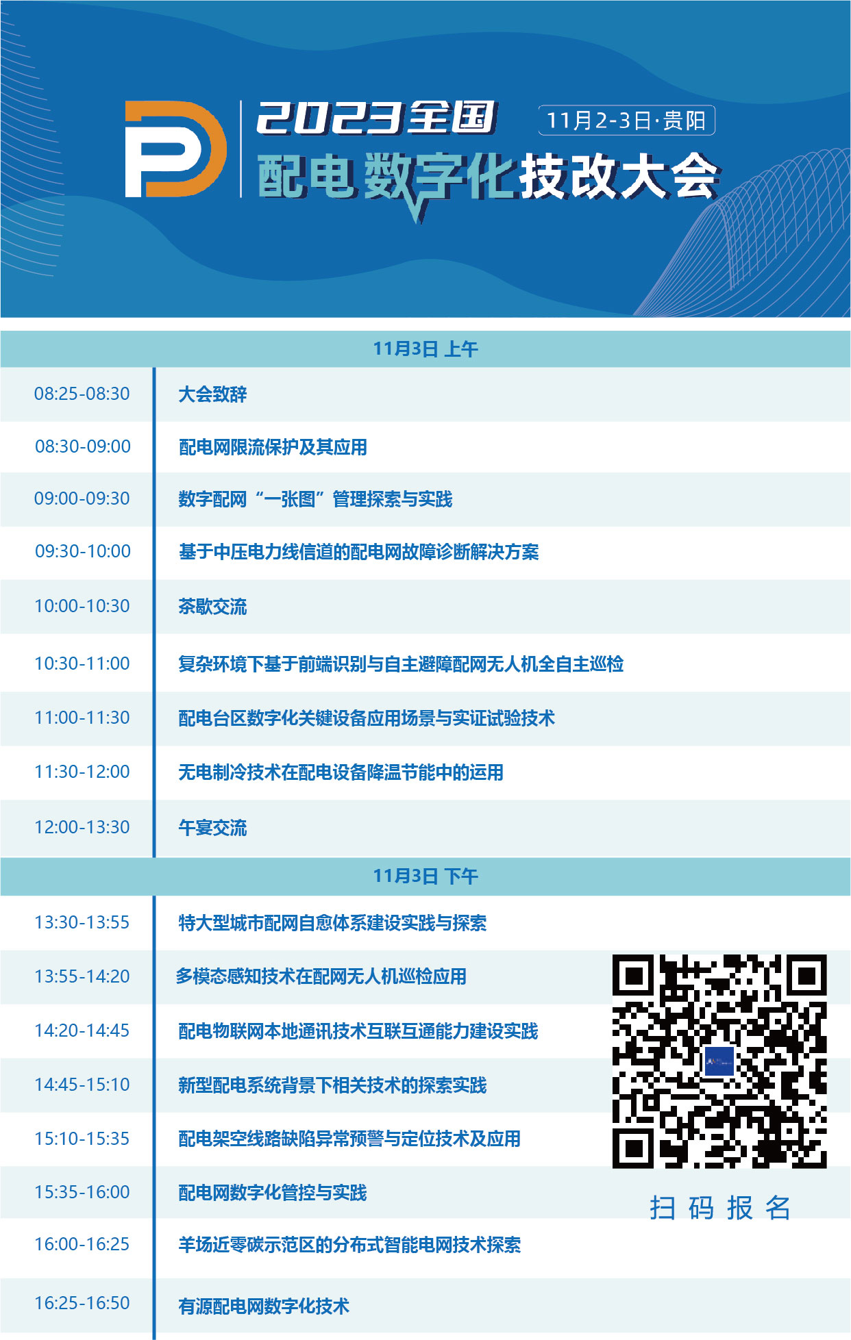 2023年11月3日,“2023全国配电数字化技改大会”将在贵阳盛大召开!11月2-3日将同期召开“第2届电力行业数字化转型大会暨第4届电力人工智能大会”!