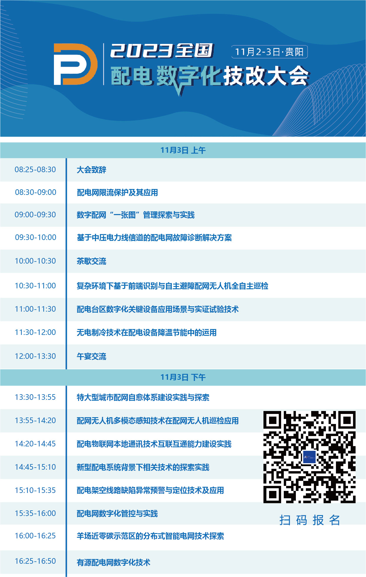 2023年11月2-3日,“第2届电力行业数字化转型大会暨第4届电力人工智能大会”将在贵阳盛大召开!11月3日将同期召开“2023全国配电数字化技改大会”!