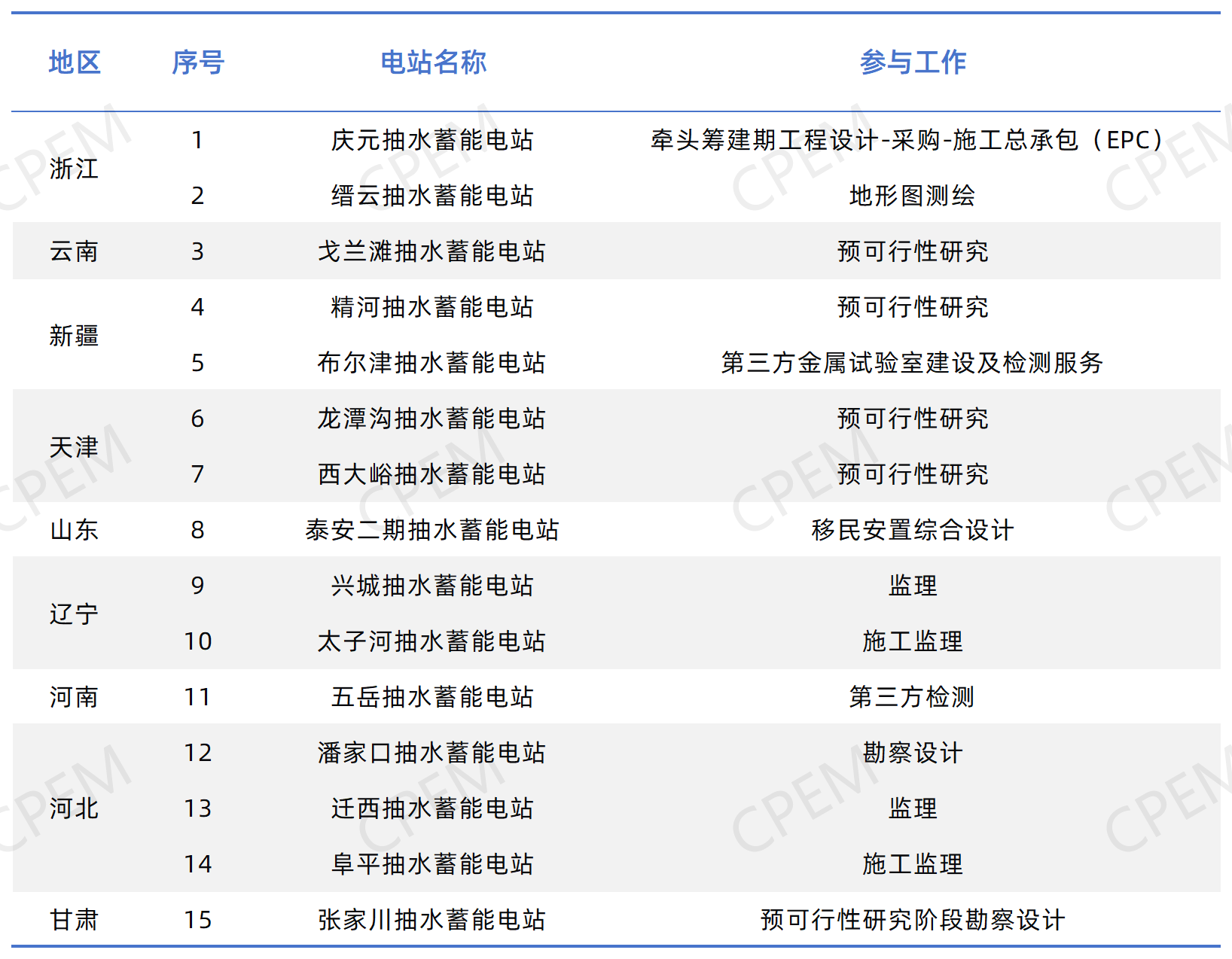 根据网络公开信息,CPEM统计了中水北方参与的一些抽水蓄能电站项目,如下: