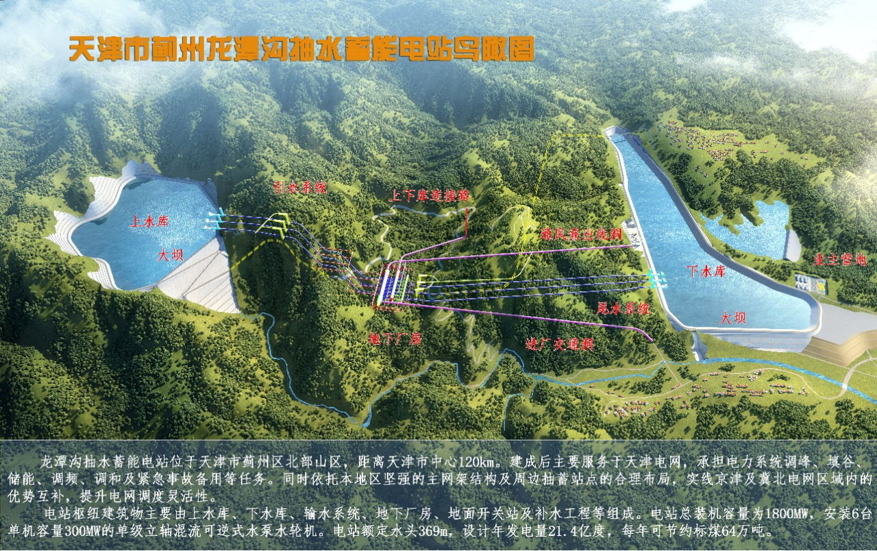蓟州龙潭沟抽水蓄能电站是天津市“十四五”重点建设项目,工程总投资135.94亿元,初选电站装机规模为1800兆瓦。