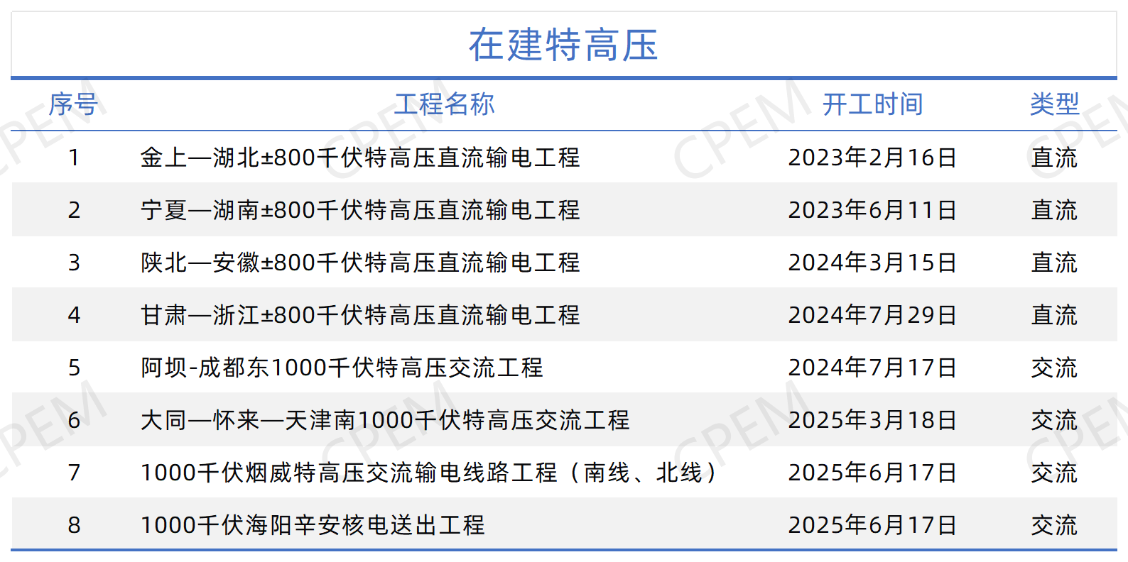 2025年6月17日,随着1000千伏烟威特高压线路工程北线、南线和海阳辛安核电送出线路基础施工首基试点的开工,我国在建特高压线路工程达8条,包括4条±800千伏直流工程(金上—湖北、宁夏—湖南、陕北—安徽、甘肃—浙江)和4条1000千伏交流工程(大同—怀来—天津南、阿坝—成都东、烟威、海阳辛安核电送出),具体如下: