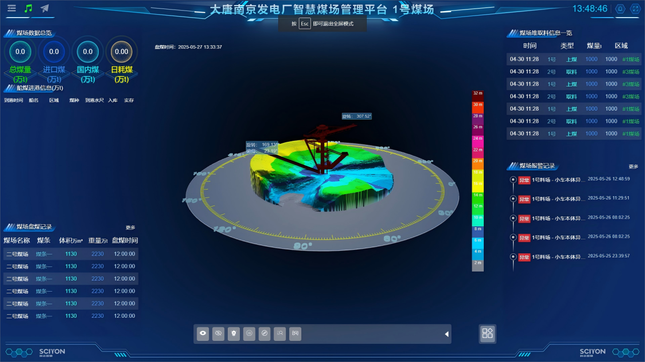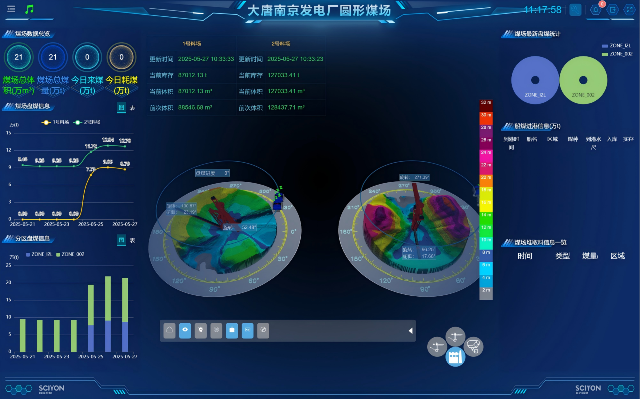 已率先上线运行! 实现煤场三维可视化、精准分层分区管理,并支持定时自动盘煤与手动盘煤,库存管理迈入“透明时代”。