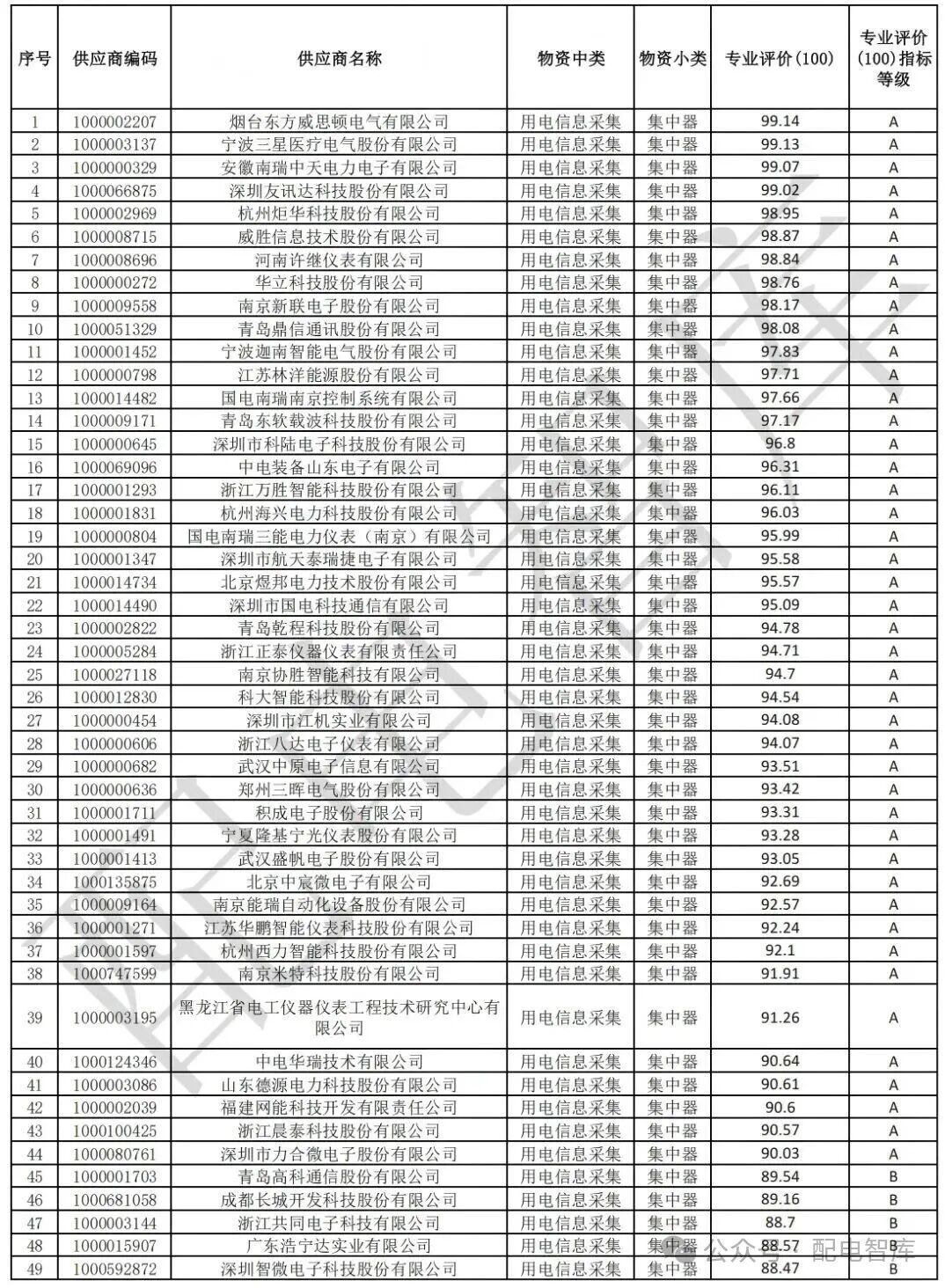 近期,国家电网有限公司开展了集中器(采集器)、融合终端供应商评价工作,评价范围及结果见附件。
