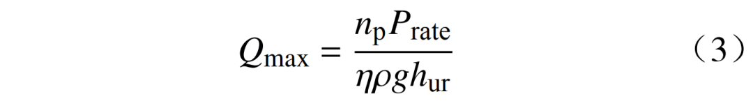 尽管利用一台机器会节省成本,但由于可逆泵存在严重的非线性和振动的特点,必须对其进行一定的限制约束。通过可逆泵的最大水流速Qmax计算为