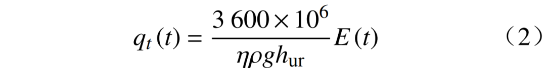 式中:η为可逆泵效率;ρ为水密度;g为势能参数;hur为上水库的高度;E(t)为t时刻输入到可逆式泵涡轮机的能量。