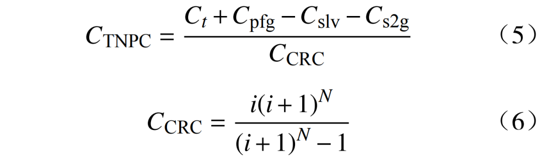 使用成本回收系数(cost recovery coefficient,CRC)CCRC计算总净现值成本(total net present cost,TNPC)CTNPC为
