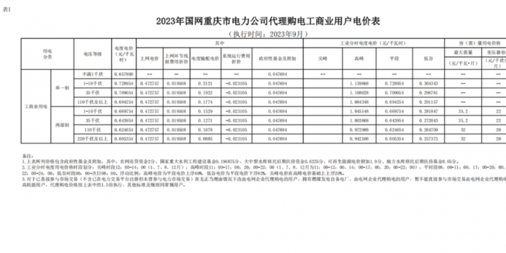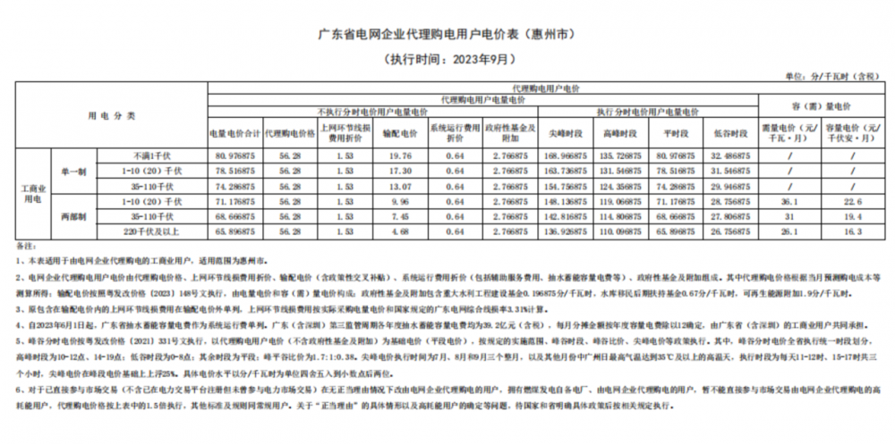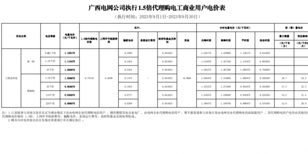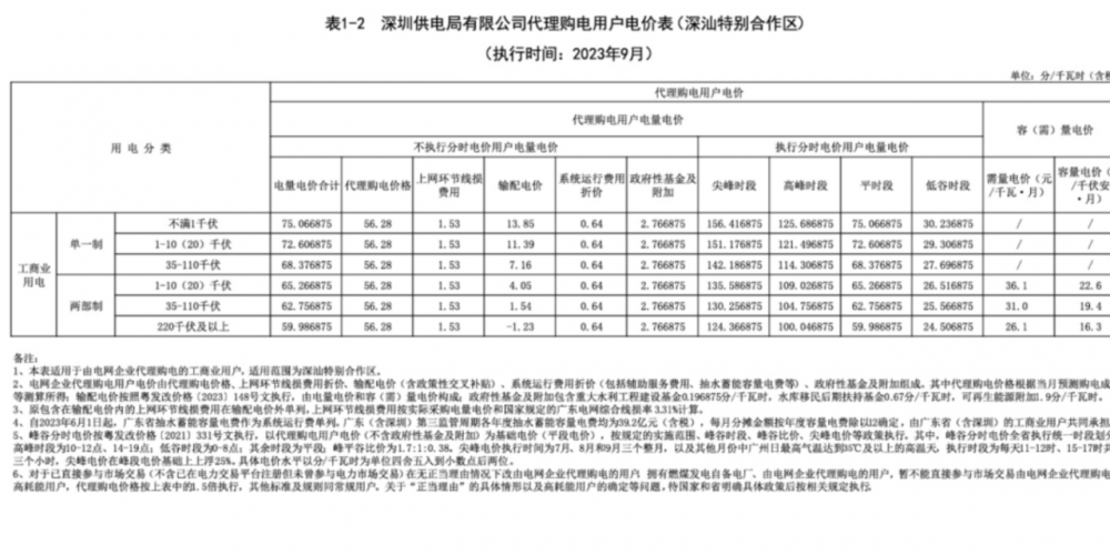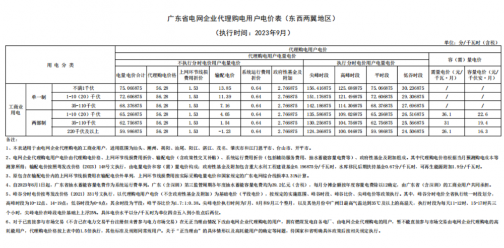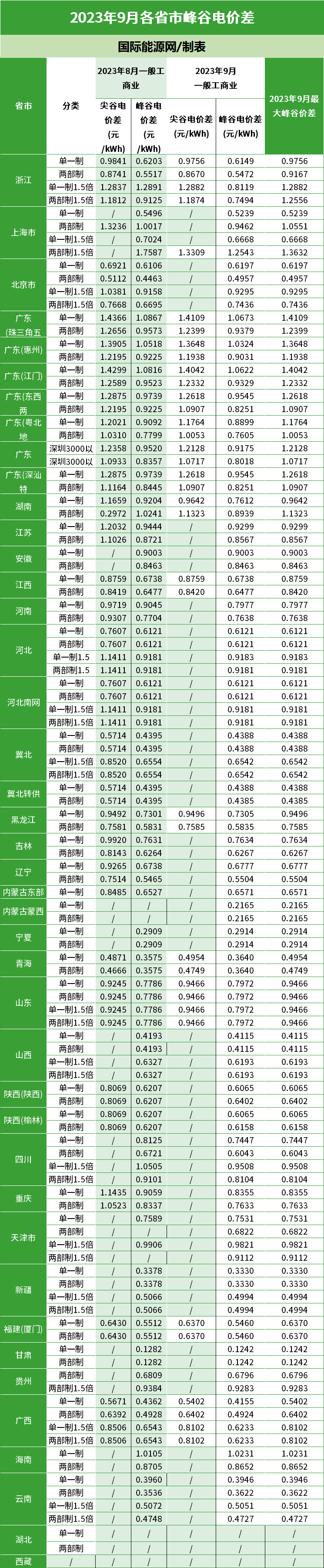 近日,2023年9月全国电网企业代理购电价格陆续发布。其中,广东市(珠三角五市)单一制尖谷电价差达到了1.4109元/kwh,上海市大工业两部制1.5倍电价达到了1.3632元/kwh。12地方代理购电峰谷价差超过1元。其中广东已公布代理购电价差均超过1元/kwh。