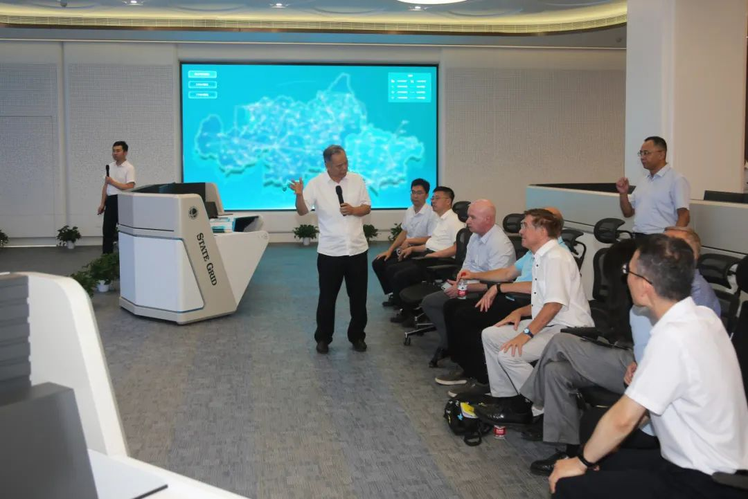 国际大电网工作组(CIGRE WG B5.83)专家在国网泰安供电公司调控中心调研时,就配网故障防御措施进行交流。(魏文婷 摄)