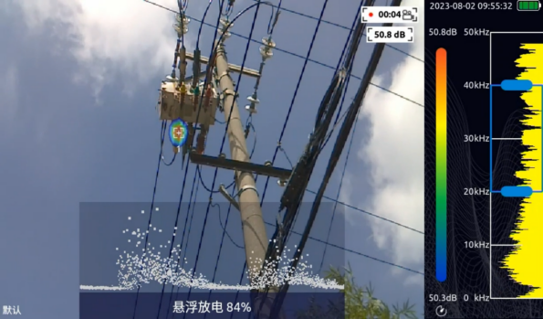 无人机机载声学成像仪,支持超声波频段。利用麦克风阵列波束形成技术获取声源分布数据,并配合高清摄像头实时采集视频画面,通过 将声源分布数据同视频图像进行声像融合,把变化的声源动态的呈现在无人机遥控器显示屏上。帮助输电线路运检人员快速排查定位潜在的局部放电故障点,以及噪音异响等。