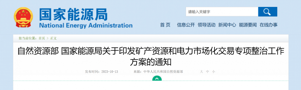 10月13日,自然资源部、国家能源局联合印发《矿产资源和电力市场化交易专项整治工作方案》(以下简称《方案》)。