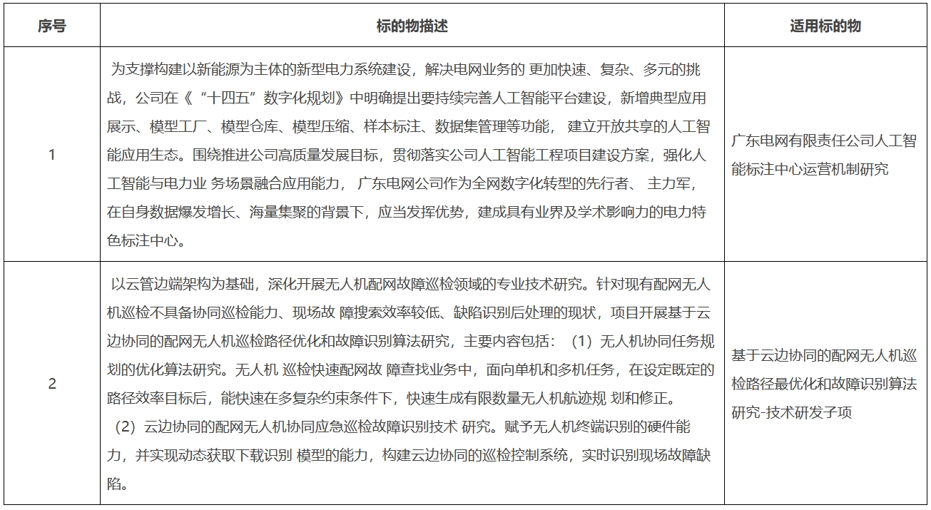 1、标的1:广东电网有限责任公司人工智能标注中心运营机制研究。