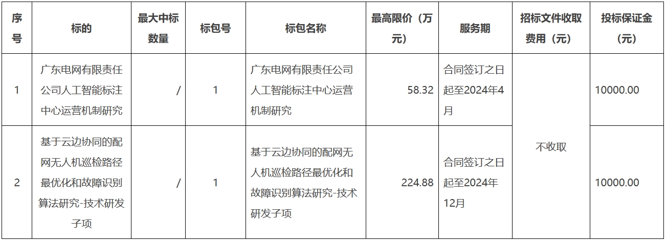 1、标的1∶广东电网有限责任公司人工智能标注中心运营机制研究。