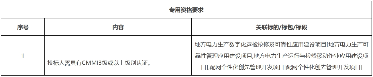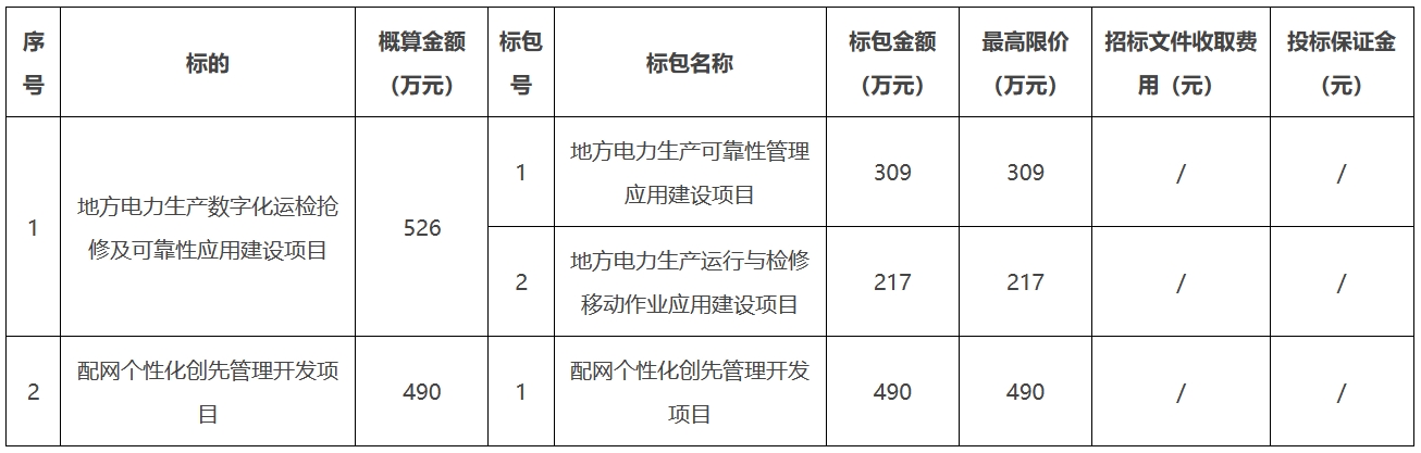 标的1∶本项目是生产精益化管理平台应用能力提升工程,主要包含输变配电状态检修辅助决策子系统、可靠性管理子系统、生产管理信息系统停复电信息仓、生产管理系统故障抢修、移动运检等子系统。实现各类停电信息的汇聚、智能研判,以及未知停电事件的主动研判、识别感知,为客户服务通知、主动抢修及供电可靠性提供数据支撑;通过构建状态评价模型和检修策略体系,开展输变配电设备状态自动评价,制定和调整检修策略,支撑检修及试验数据分析;构建统一规范的移动运检应用,通过统一认证、统一权限管控,实现标准化现场作业信息采集。
