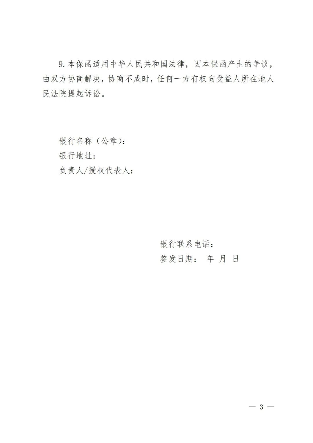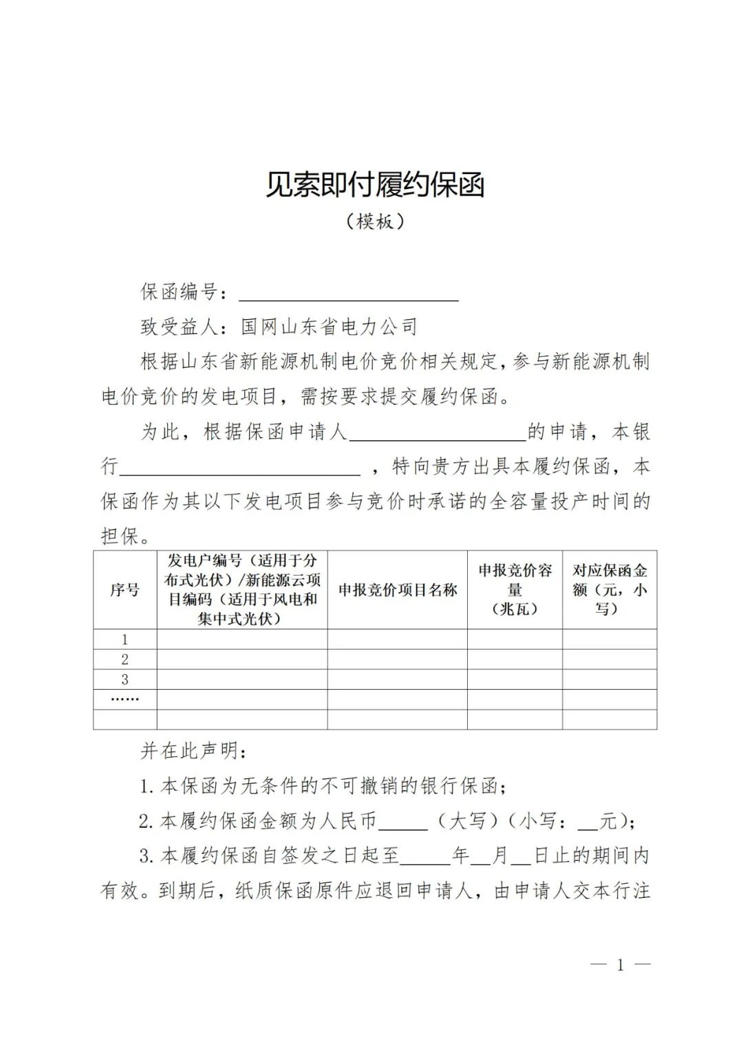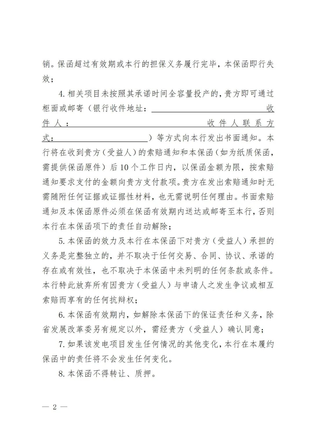拟参与竞价的未投产项目,需提交在国内银行营业网点开具的履约保函。履约保函应严格按照模板开具(模板详见附表)。